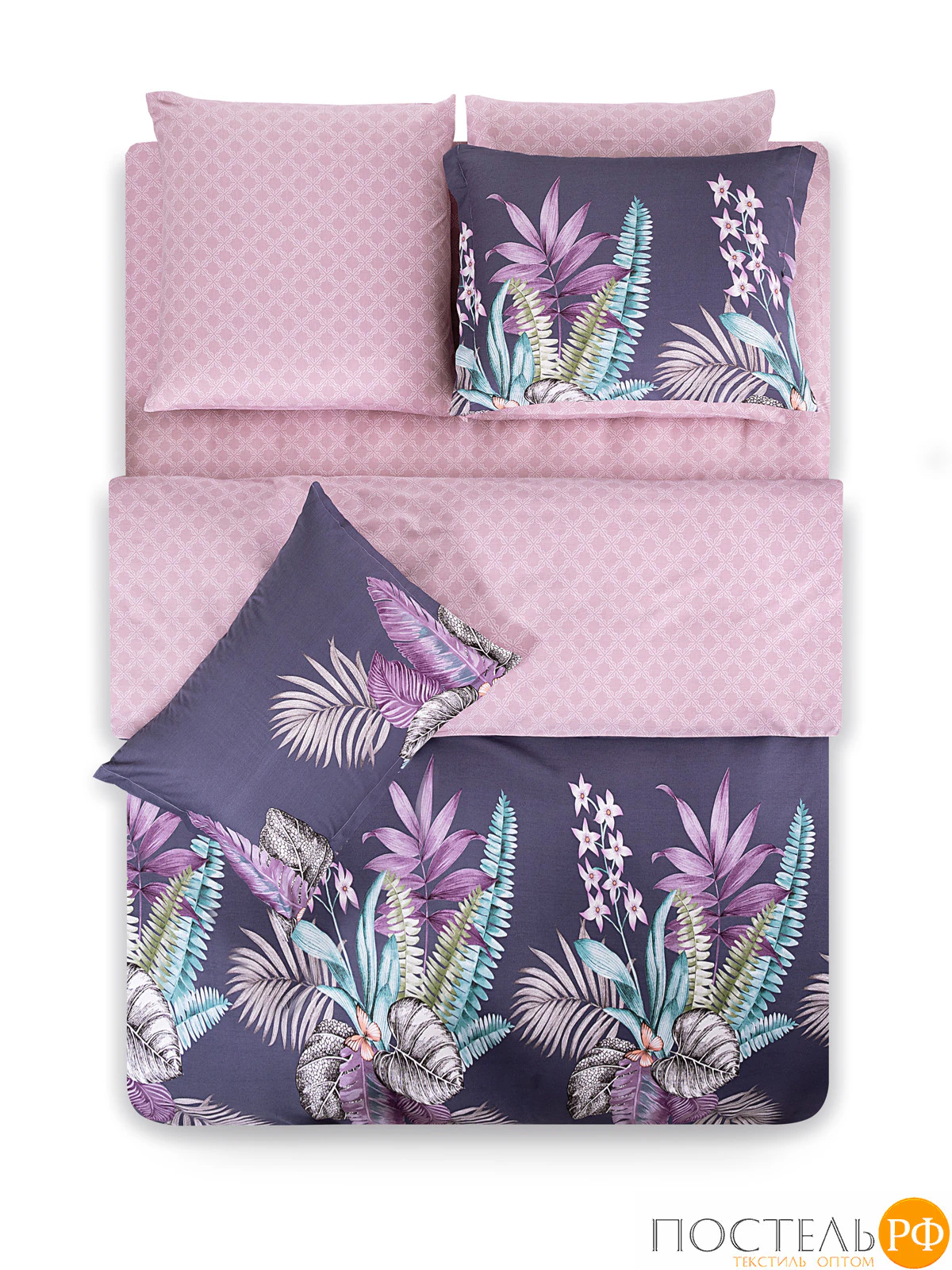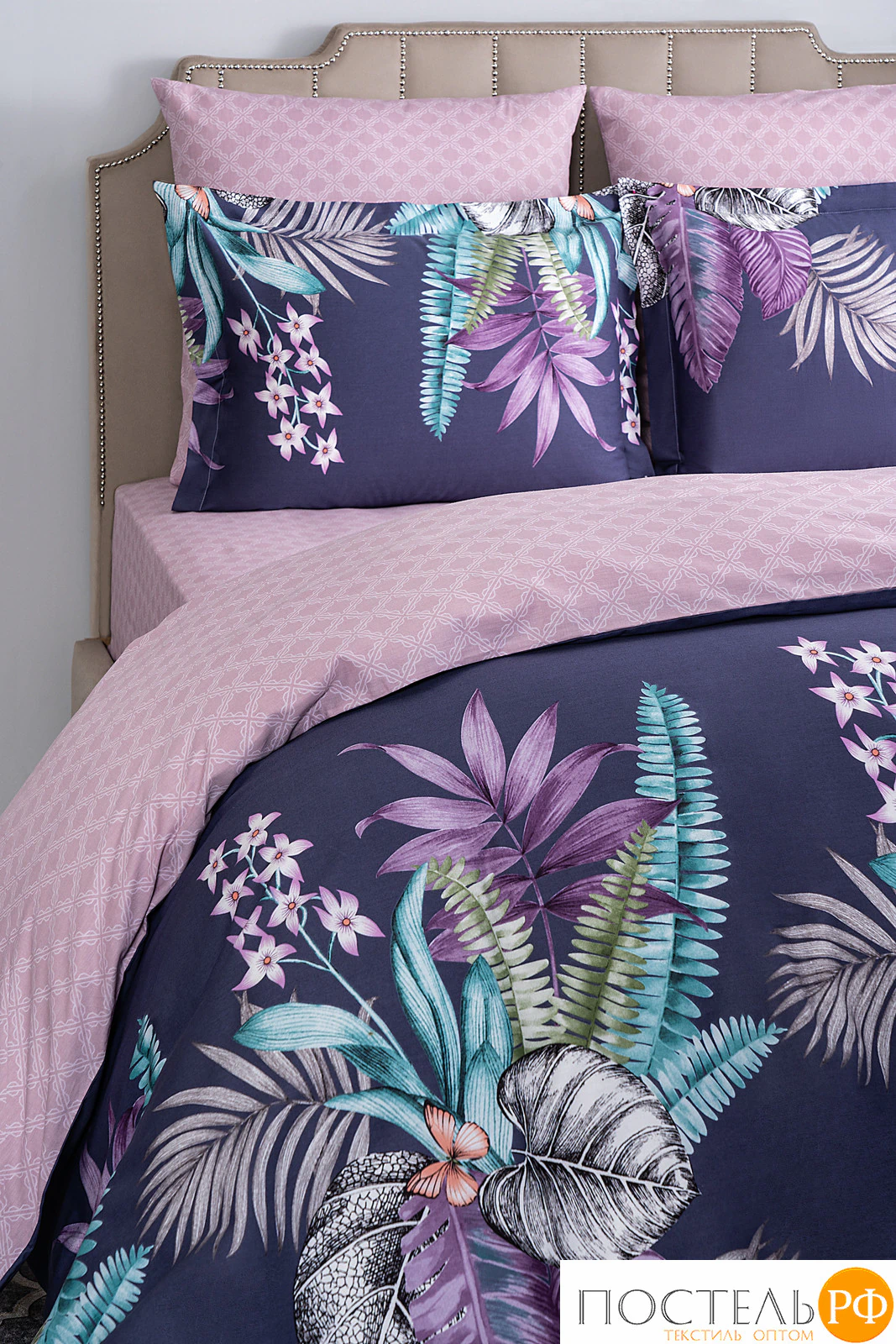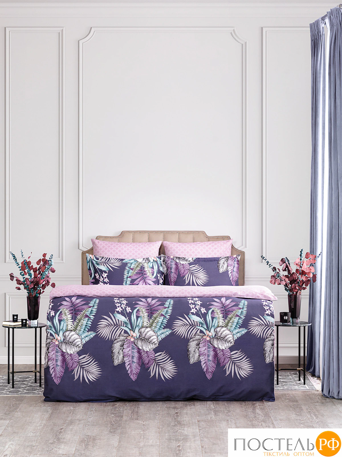 Двусторонний дизайн позволяет легко изменять облик вашей спальни, а застёжка пододеяльника на молнии делает использование комплекта более удобным. Комплект постельного белья привлекает внимание своим ярким и экзотическим дизайном. Глубокий фиолетовый фон создает эффектный контраст для красочных тропических растений, а розовый оттенок ткани-компаньона добавляет мягкости и романтичности. Этот комплект идеально впишется в интерьеры в стиле бохо или тропическом дизайне, привнося в них свежесть и яркость. Он станет отличным выбором для создания уютной и стильной атмосферы в спальне, где каждый сон будет приносить вдохновение и расслабление.