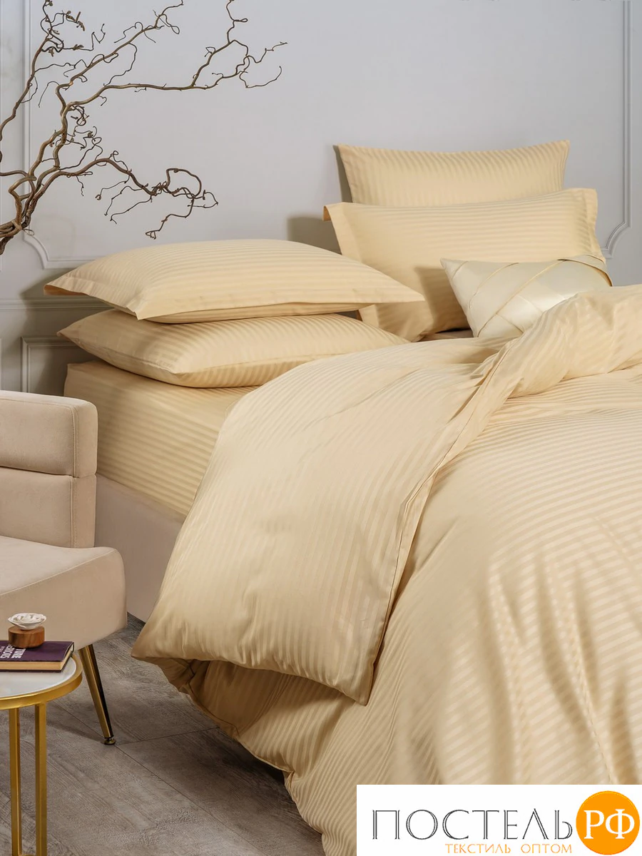 CASSIA ЛЮКС Страйп Сатин беж К-т Наволочек 50x70-2, 2 пр., хл/сатин