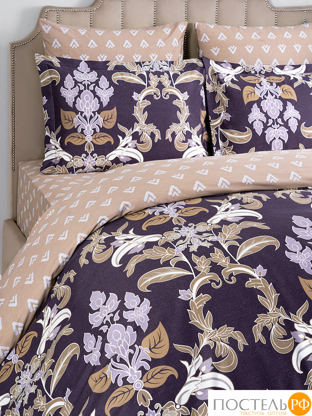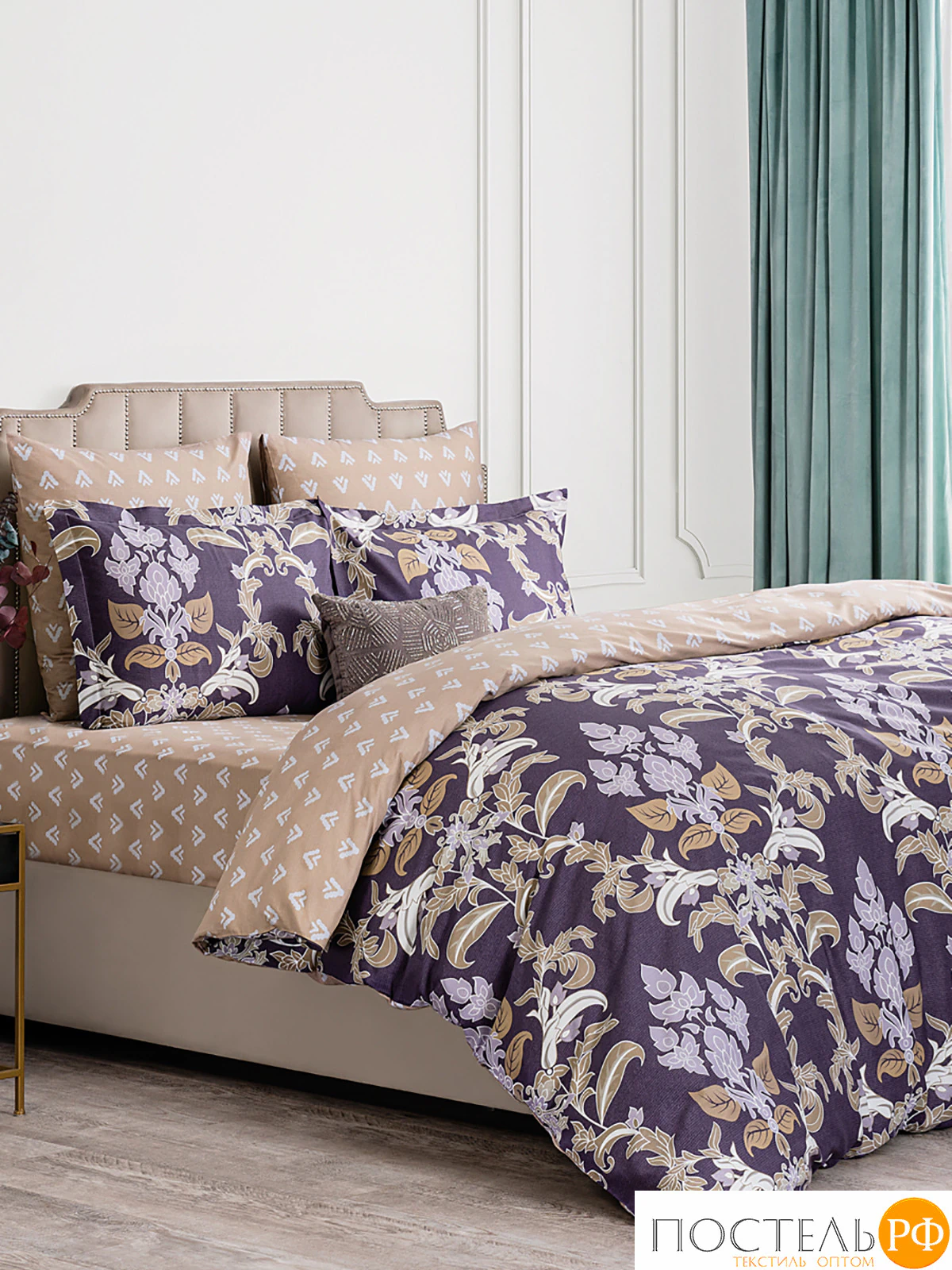 Двусторонний дизайн позволяет легко изменять облик вашей спальни, а застёжка пододеяльника на молнии делает использование комплекта более удобным. Комплект постельного белья впечатляет своим элегантным дизайном и насыщенной цветовой палитрой. Глубокий фиолетовый фон служит основой для изысканных цветочных мотивов в пастельных тонах, таких как светлый лавандовый и золотистый, создавая эффектный контраст и добавляя глубину. Декоративные элементы с геометрическим узором в теплых бежевых и белых оттенках добавляют разнообразия и легкости, что делает комплект не только стильным, но и универсальным. Этот комплект идеально подойдет для интерьеров в классическом или современном стиле, добавляя нотки роскоши и уюта. Его элегантный дизайн и теплые цвета создадут атмосферу спокойствия и комфорта в вашей спальне, превращая её в идеальное место для отдыха.
