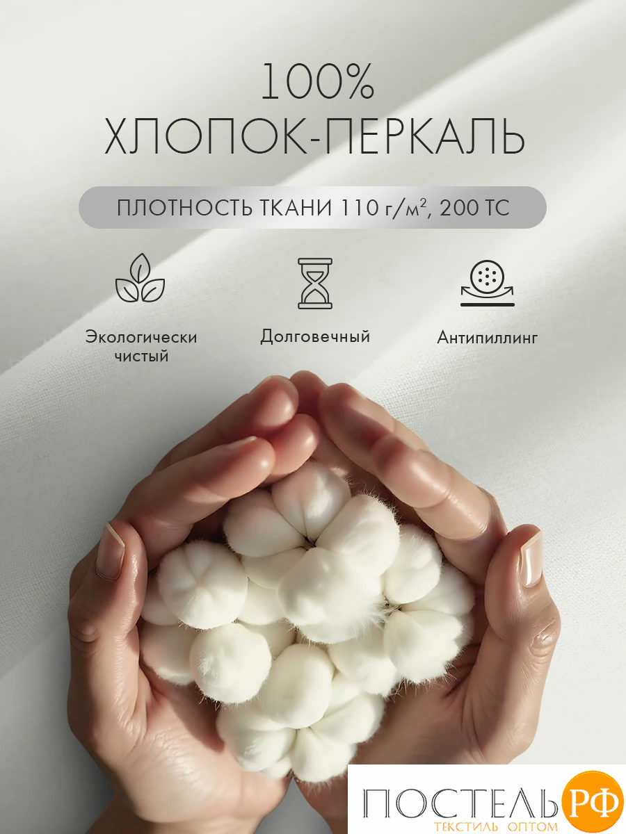 Состав:100% хлопок; плетение - перкаль, дизайн – однотонный, плотность ткани 110 гр/м2; 200ТС.