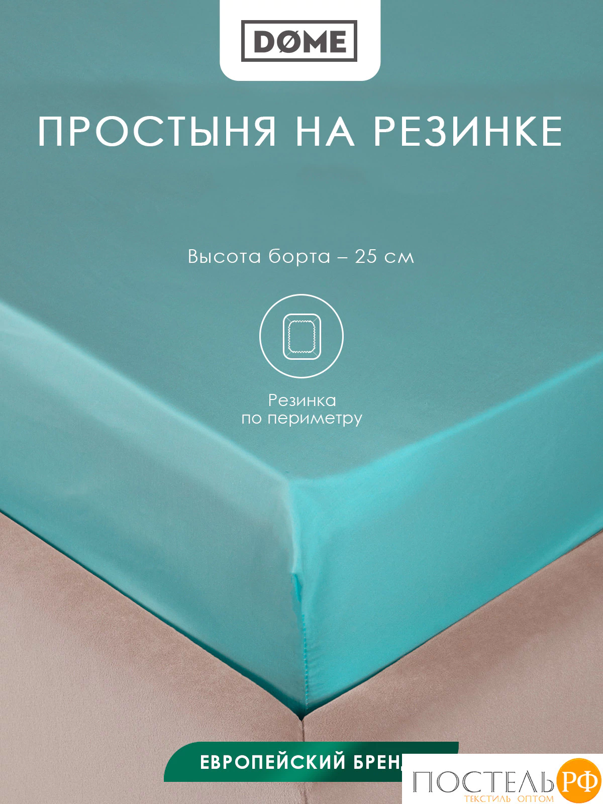 Dome ЛОРЕНО зел Простыня на резинке 160х200+25 (см), 1пр., хл/сат