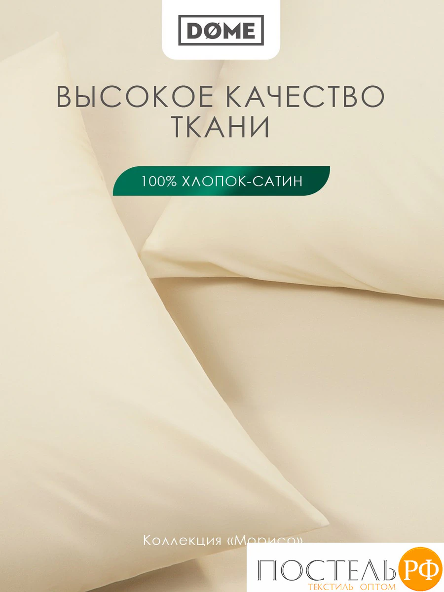 Комплект наволочек размером 50х70 см- 2 шт коллекции «МОРИСО» бренда DOME изготовлен из натурального хлопка в плетении сатин высокого качества плотностью 120 г/м2.