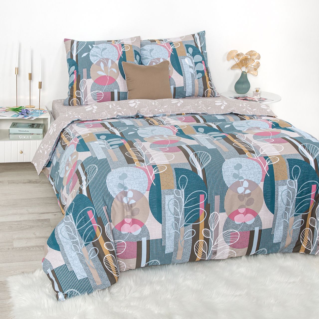 «Ирвинг» – постельное белье с рисунком в виде абстракции, которое характеризуется смелым сочетанием форм и цветов. Необычные узоры в виде кругов, полос и растительных мотивов добавляют дизайну индивидуальности, выразительности и динамики. Комплект из бязи подарит расслабление и отдых.