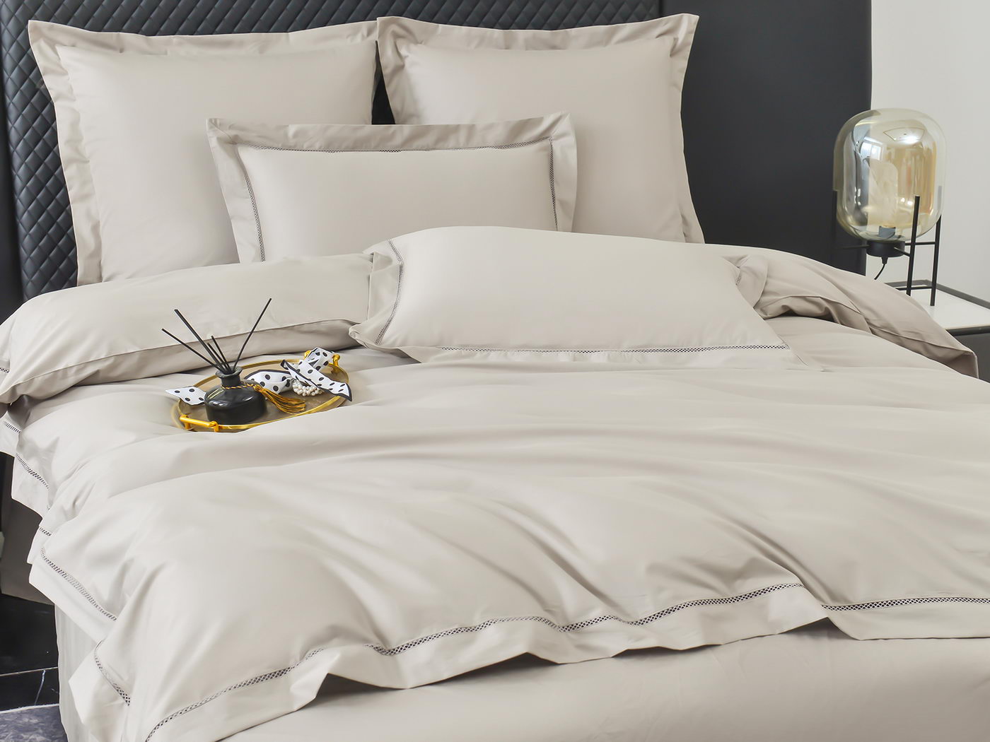 Комплект постельного белья однотонный с мережкой