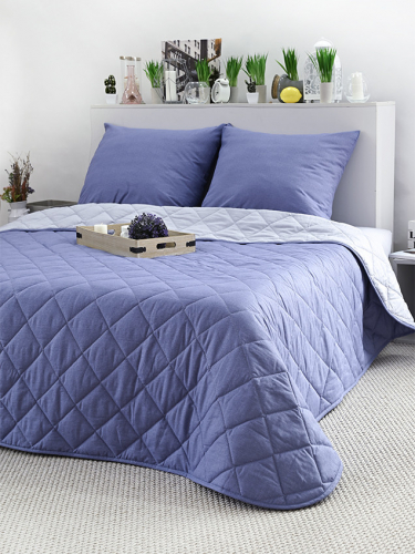 Поплин плотностью 110-115 г/кв.м, 100% хлопок , наполнитель - синтепон 150 г/м2 Уникальность набора в том , что в него входят : наволочки, простыня и легкое всесезонное одеяло. Это современное и очень удобное решение, которое идеально подходит тем, кто хочет быстро застилать кровать. Покупая постельные комплекты с одеялом вы экономите на покупке отдельного одеяла. Так же одеяло можно использовать как покрывало. используя его с двух сторон.   Комплект легко стирается в обычной машине.