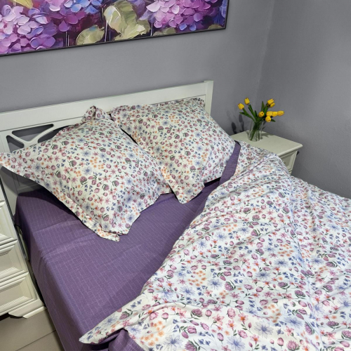 Обратите внимание!Пододеяльник двухсторонний - сшит из основной ткани и ткани-компаньонаНаволочки сшиты из основной тканиПростыня сшита из ткани-компаньона