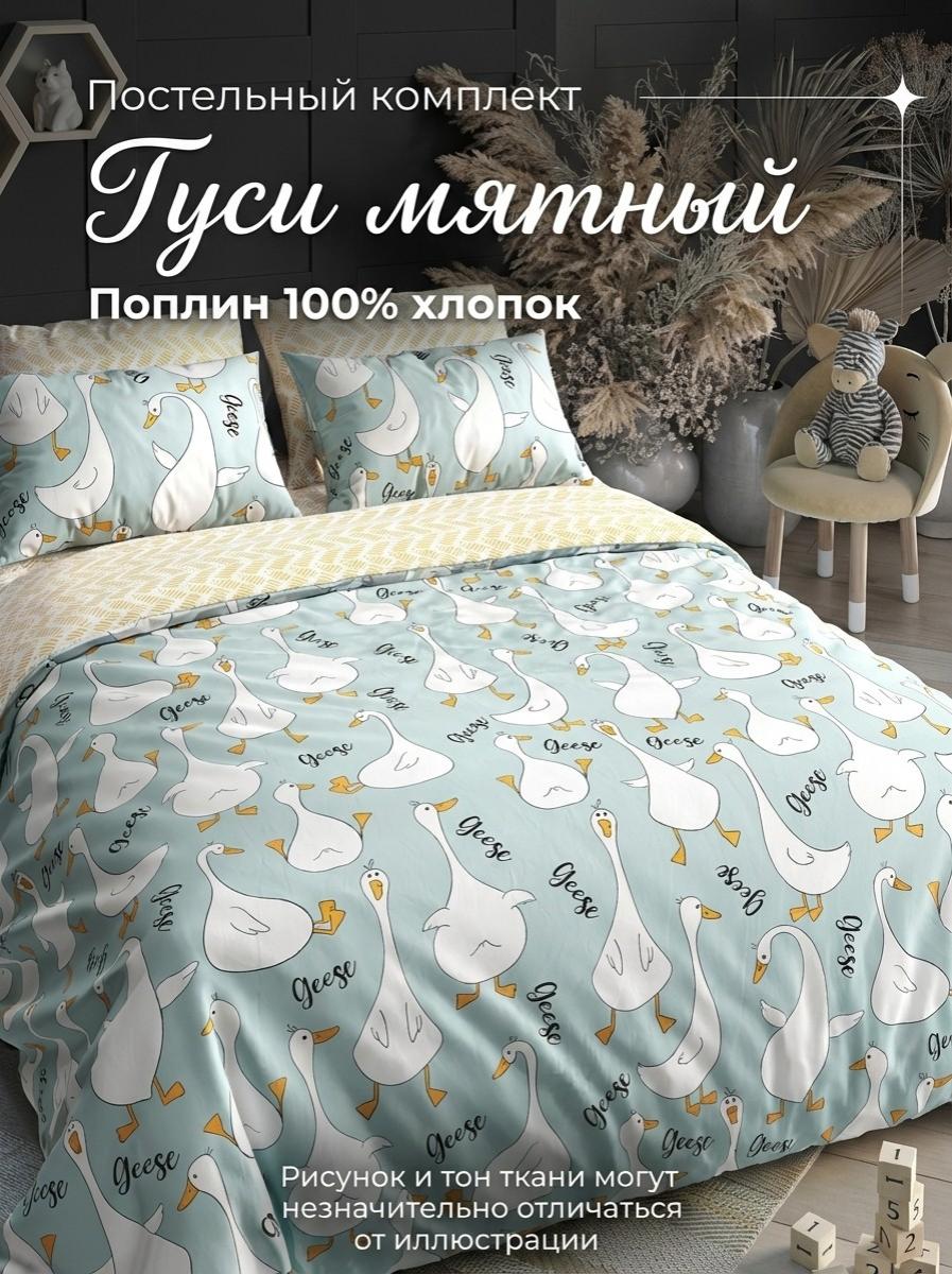 Комплект постельного белья Гуси мятный Поплин