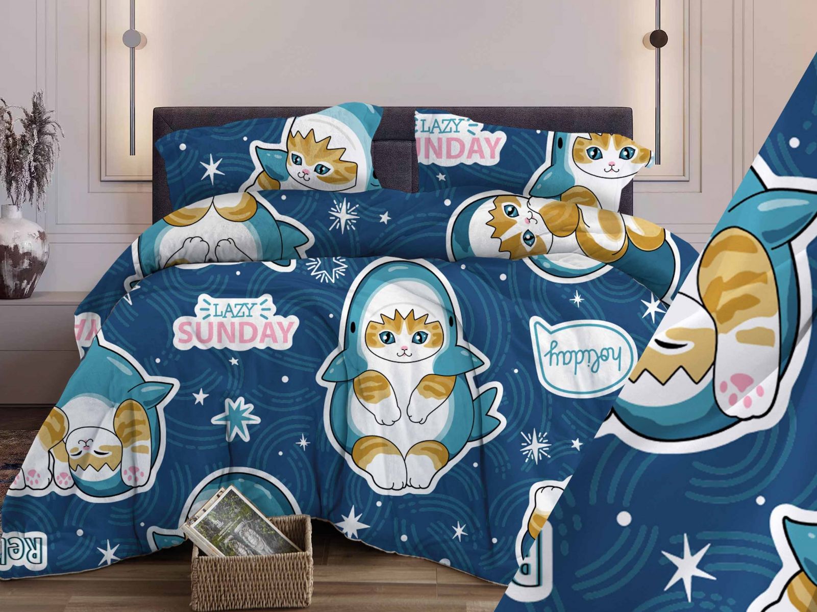 Комплект постельного белья Кот-Акула бязь