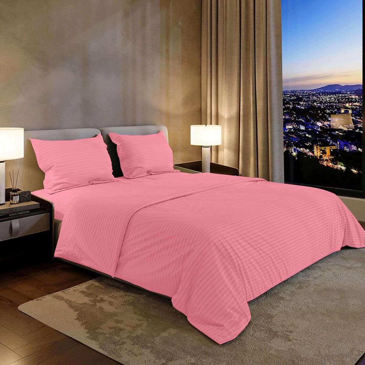 Погрузитесь в мир комфорта и стиля с комплектом постельного белья из премиального страйп-сатина. Эта новинка сочетает в себе мягкость и прочность, обеспечивая вам безупречный сон. Особое переплетение нитей создает на ткани элегантный однотонный рисунок с чередующимися глянцевыми и матовыми полосками шириной 1 см.
