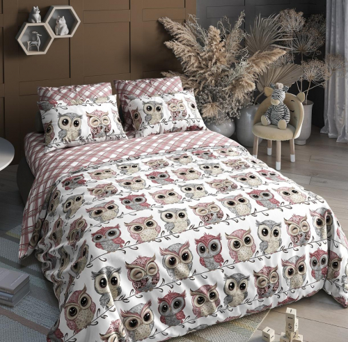 Комплект постельного белья Совушки розовый Поплин