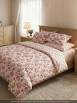 Пододеяльник сшит из основной ткани и ткани компаньонаНаволочки сшиты из основной тканиПростыня сшита из ткани компаньона