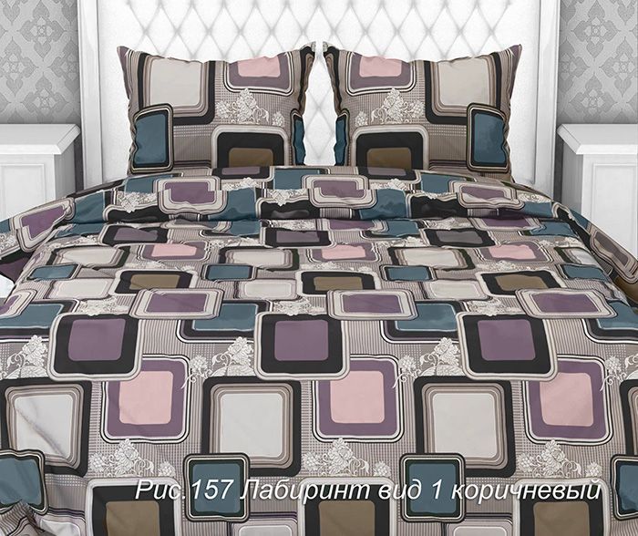 КПБ 2,0 сп (пододеяльник 2,0 сп + 2 наволочки 70х70) бязь ЛЮКС Лабиринт арт. 157-1 (коричневый)