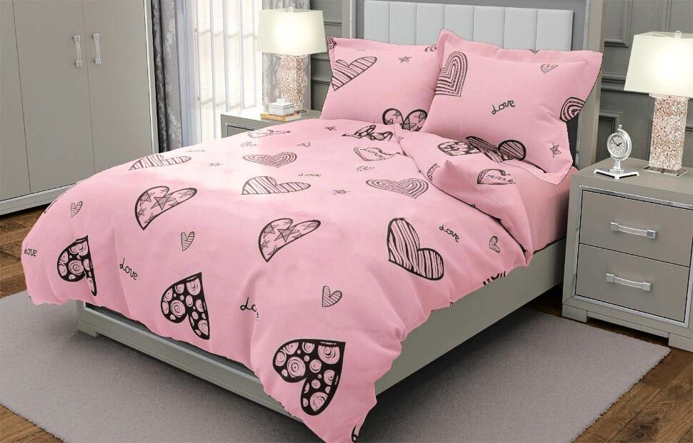 Тип изделия: КПБ; Размер: 2,0 сп; Материал ткани: бязь; Состав: 100% хлопок; Плотность: 120 ± 5 г/м2; Простыня: без простыни; Простыня на резинке: Нет; Пододеяльник: 177х215 см - 1 шт; Наволочка: 70х70 см - 2 шт; Праздники: День святого Валентина, 8 марта; Производство: г. Иваново; Цвет: розовый