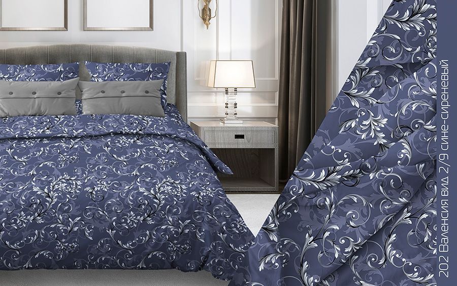 КПБ 2,0 сп (пододеяльник 2,0 сп + 2 наволочки 70х70) бязь ЛЮКС Валенсия арт. 202-2/9 (сине-сиреневый)