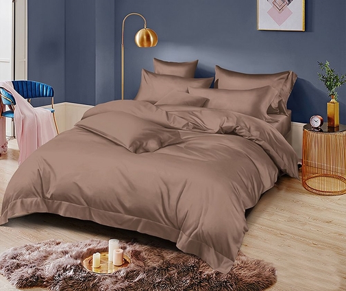 КПБ 2сп поплин однотонный Оливковая коллекция с простыней на резинке (160*200*25) Реноме<18-1324 Молочный шоколад> (арт.02/428)