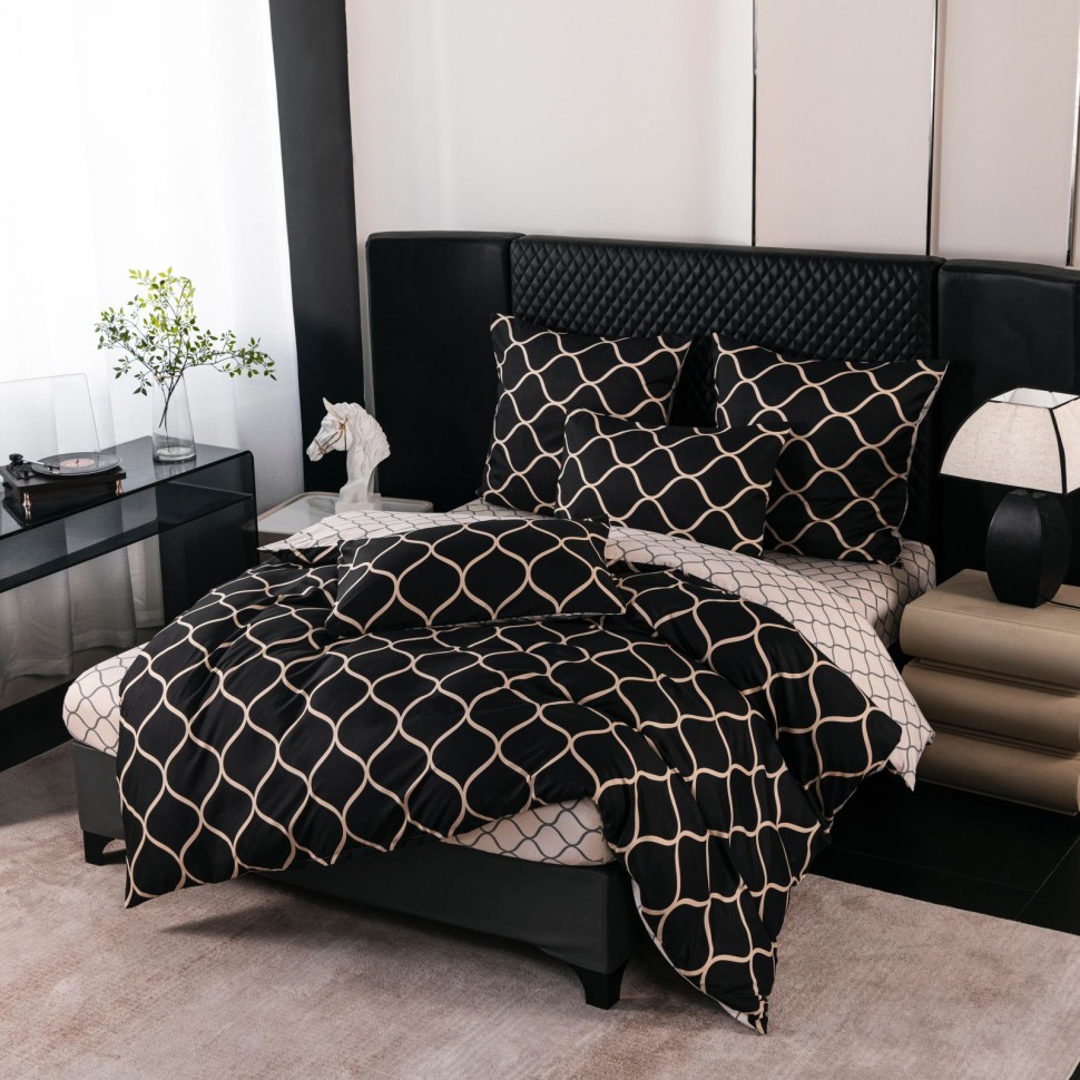 Евро: пододеяльник 200х220 см, простыня 180х200+25 см, наволочка 50х70 см - 2 шт., наволочка 70х70 см - 2 шт.