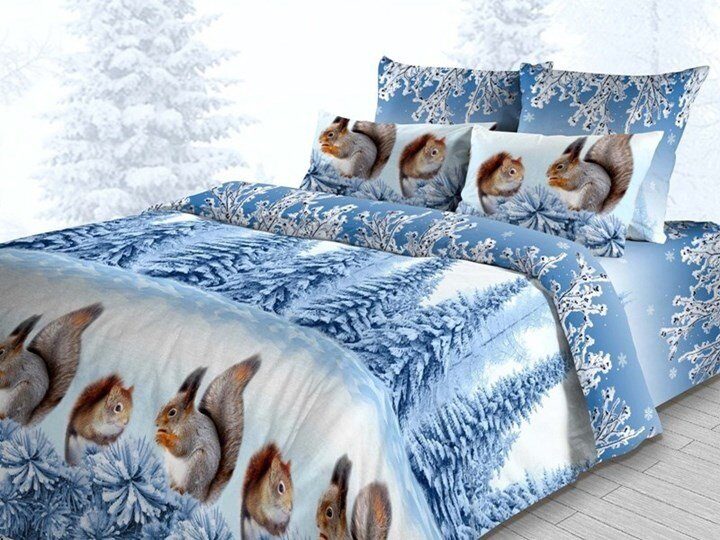 КПБ "Белочки"-голуб. бязь хлопок 100% Семейный