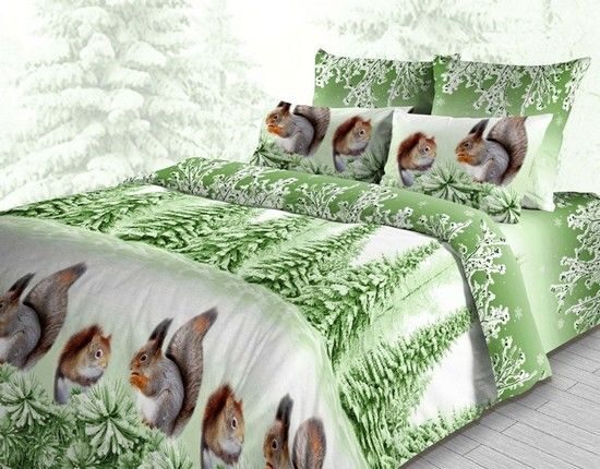 КПБ "Белочки"-зелен. бязь хлопок 100% Семейный
