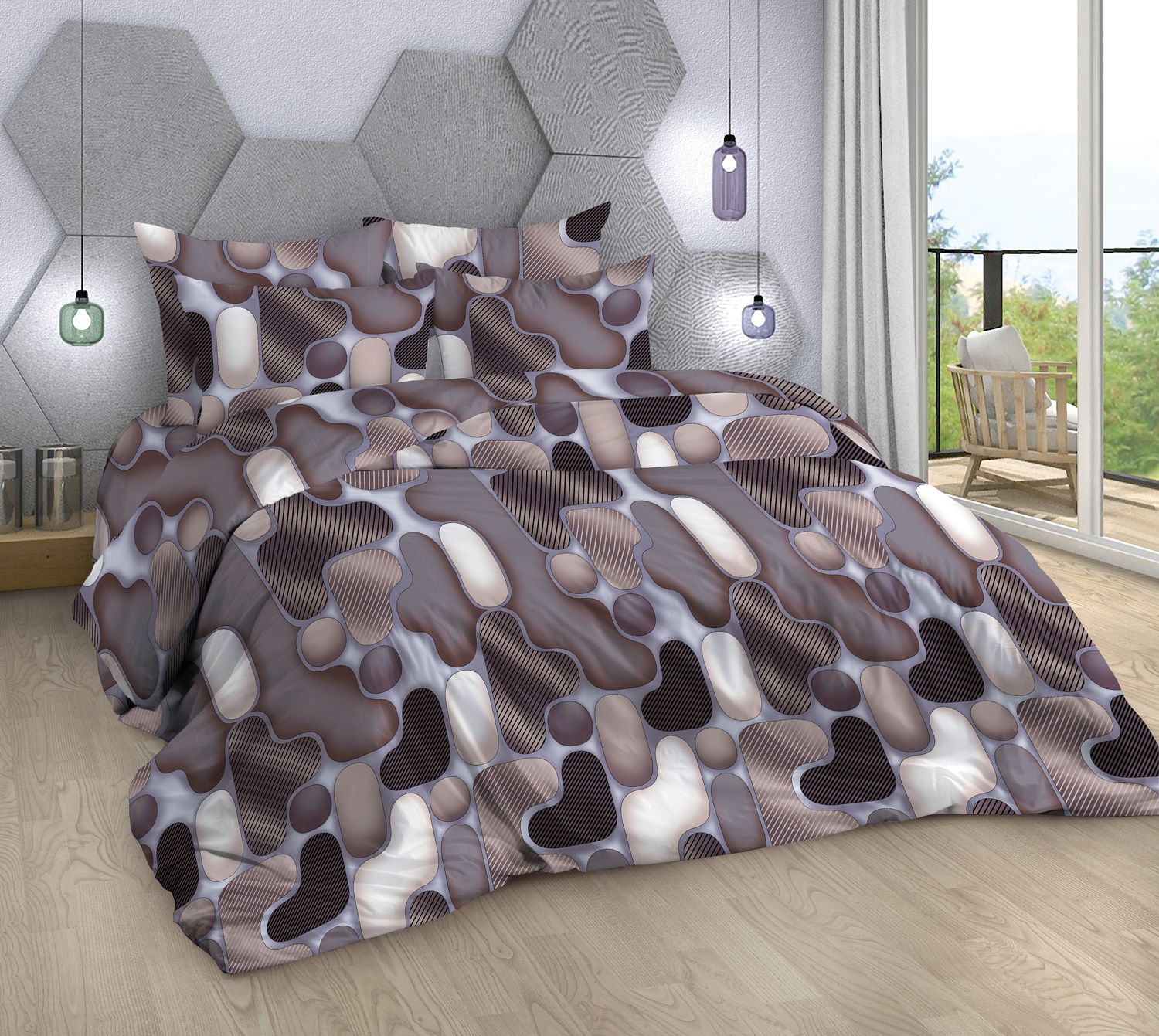 Евро спальный. Пододеяльник: 200х218 - 1 шт. Простыня: 240х218 - 1 шт. Наволочки: 70х70 - 2 шт.