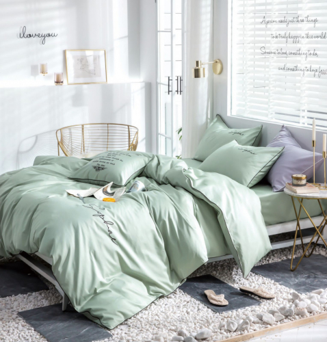 КПБ Mency Winni однотонный с вышивкой на резинке по кругу MENWOV014