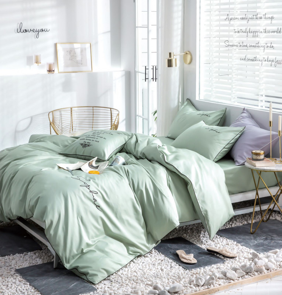 КПБ Mency Winni однотонный с вышивкой на резинке по кругу MENWOV015