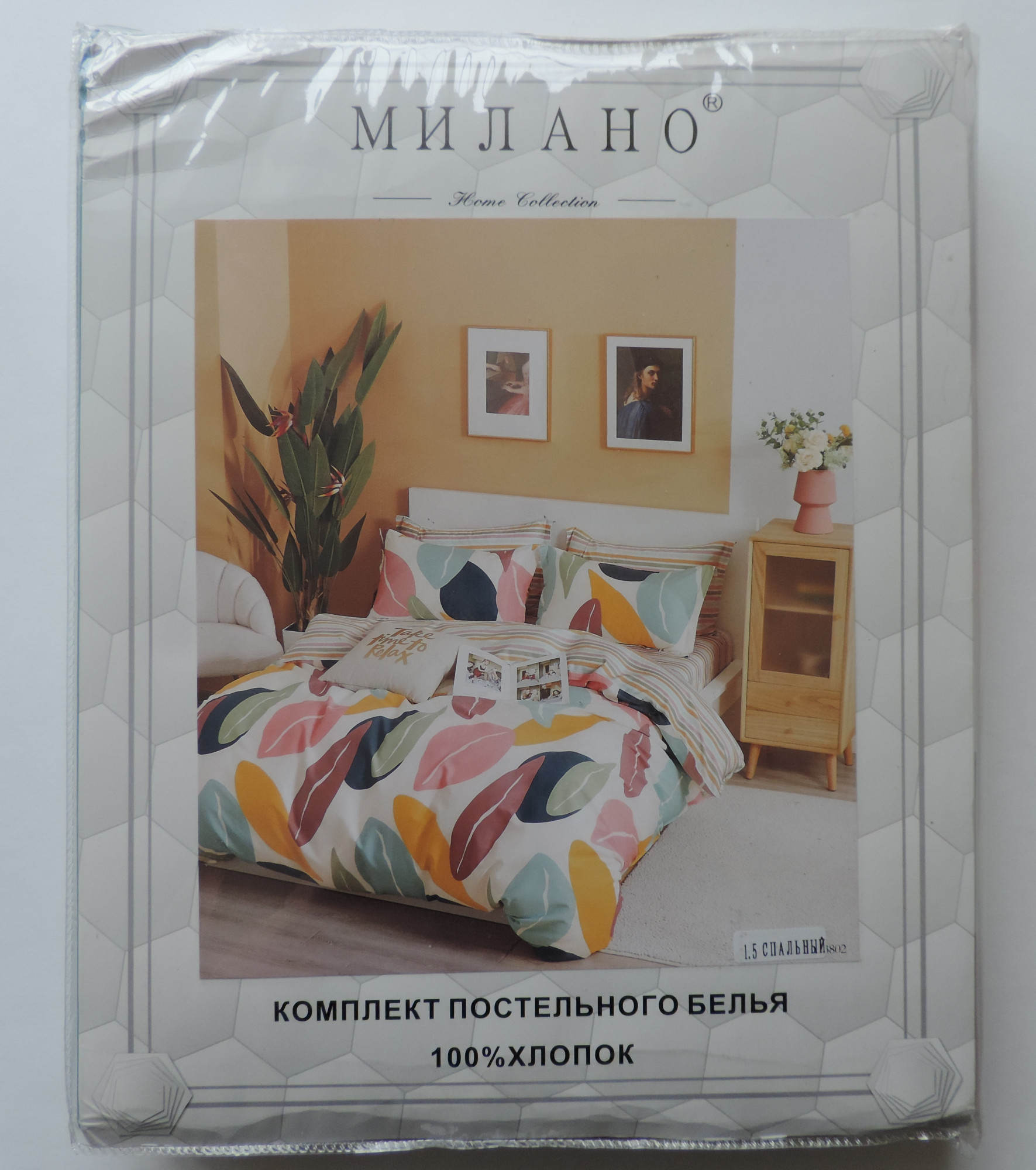 Как на фото 1,5 сп.: пододеяльник 150*220 см.-1 шт. простыня 160*2 2 0см.-1 шт. наволочкa 70*70 - 2 шт.