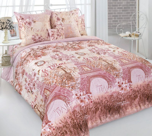 Евро спальный. Пододеяльник: 200х218 - 1 шт. на молнии Простыня: 240х218 - 1 шт. Наволочки: 70х70 - 2 шт. на молнии