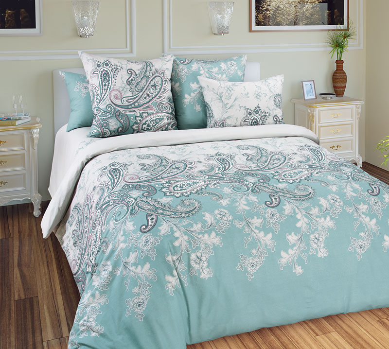 Евро спальный. Пододеяльник: 200х218 - 1 шт. на молнии Простыня: 240х218 - 1 шт. Наволочки: 70х70 - 2 шт. на молнии