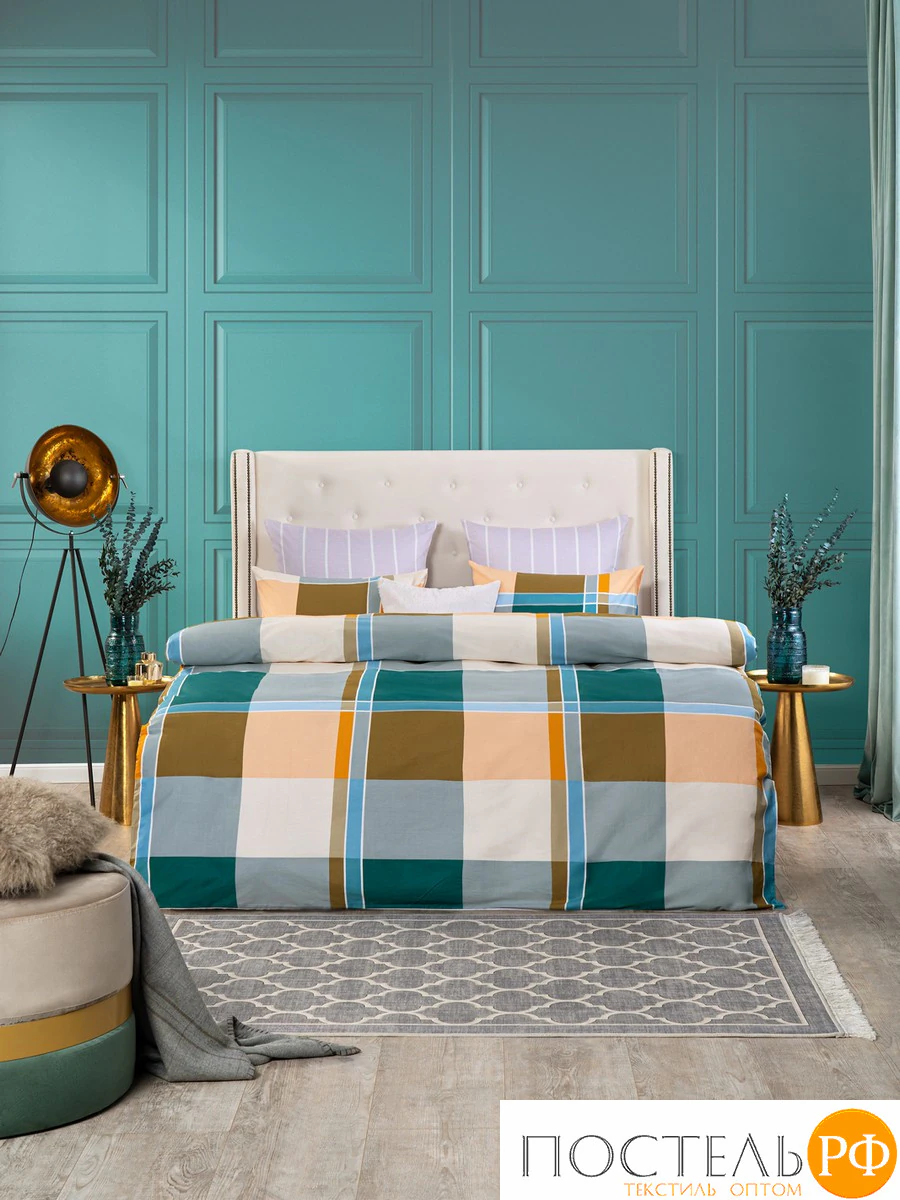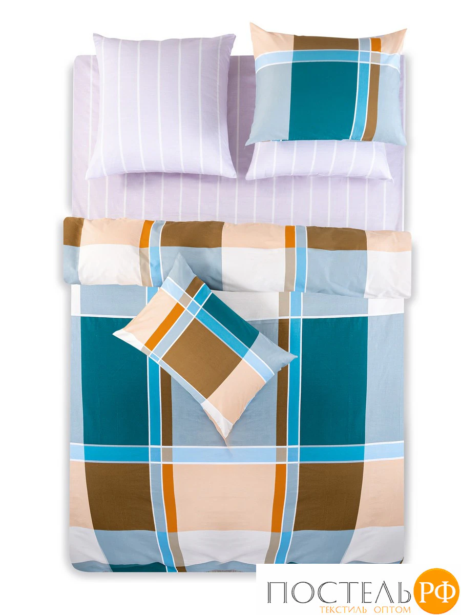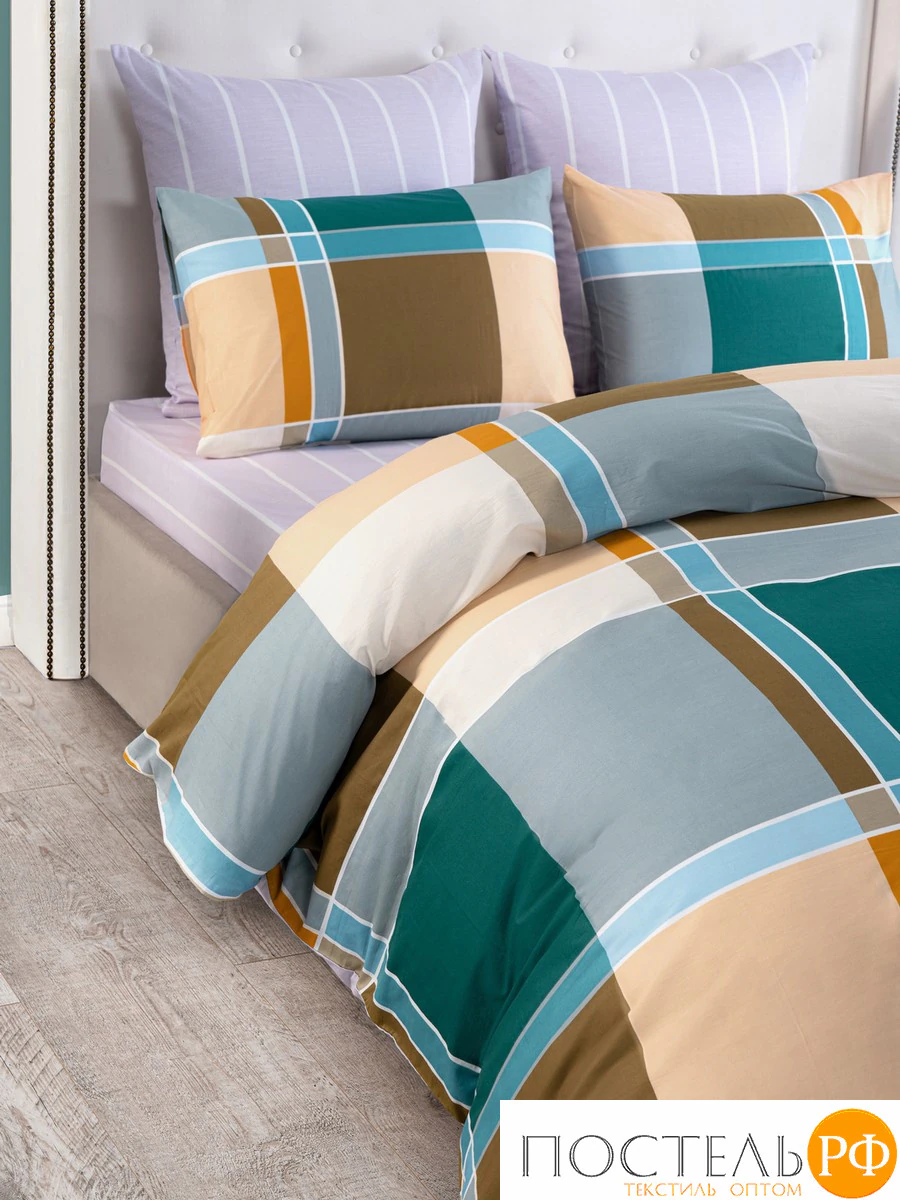 Постельное белье Дюрен с ярким и современным дизайном привлекает внимание своим стильным сочетанием цветов и узоров. Основной элемент — это крупный клетчатый принт, состоящий из ярких квадратов в оттенках голубого, коричневого, желтого и белого. Этот узор создает динамичный и свежий вид, который добавляет красок в интерьер. Ткань-компаньон с тонкими вертикальными полосками в светло-фиолетовом цвете прекрасно дополняет общий ансамбль, добавляя легкости и современности. Такой комплект идеально подойдет для интерьеров в скандинавском или современном стиле, создавая уютную и яркую атмосферу в вашей спальне. Он станет прекрасным выбором для тех, кто хочет добавить стильные акценты в свое пространство.