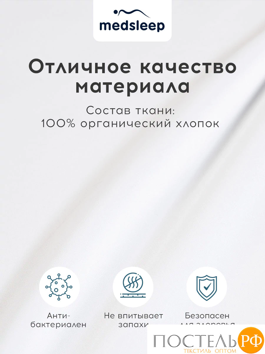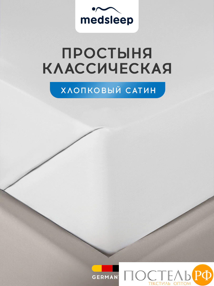 Простыня без резинки в размере 180х220 см коллекции «HOTEL» бренда MEDSLEEP изготовлена из натурального хлопка в плетении сатин высокого качества, плотностью 140 г/м2.