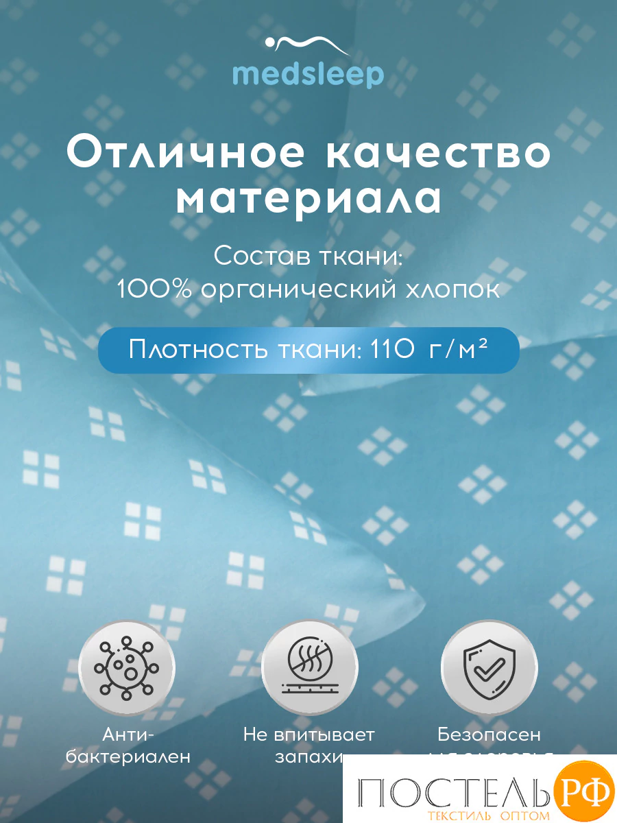 Комплект наволочек бренда MEDSLEEP коллекции «КАТАЛЕЯ» размером 70х70см - 2 шт изготовлен из 100% хлопка в плетении сатин высокого качества, плотностью 110 г/м2.