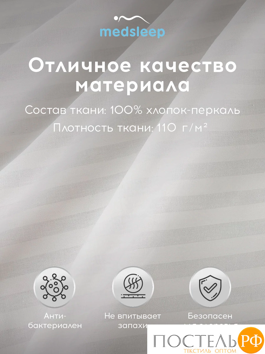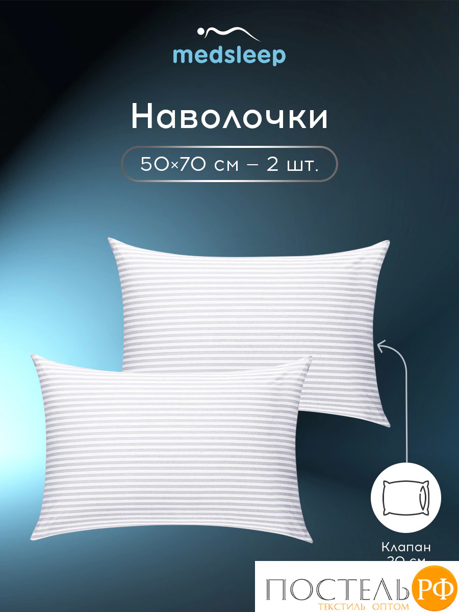 Комплект наволочек 70х70 - 2 шт. бренда MEDSLEEP коллекции «ЛИНДАУ» изготовлены из 100% хлопка-перкаль высокого качества плотностью 110 г/м2 в России.