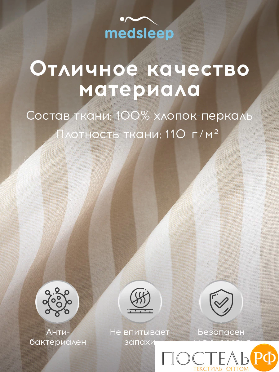 Простыня натяжная на резинке 180х200х25 см бренда MEDSLEEP коллекции «ЛИНДАУ» изготовлена из 100% хлопка-перкаль высокого качества плотностью 110 г/м2 в России.
