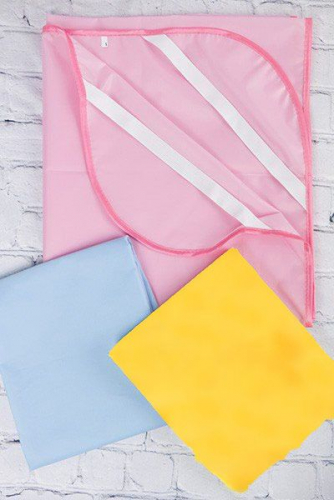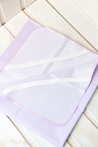 Клеенка на детский матрасик в кроватку. Окантована тесьмой, по углам вшита резинка для надевания на матрас. Материал — влагоудерживающий; курточная ткань, обработанная водоотталкивающим составом.
