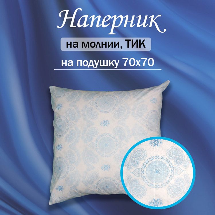 Наперник 70х70 на молнии, ТИК набивной №8 Вензель (голубой)