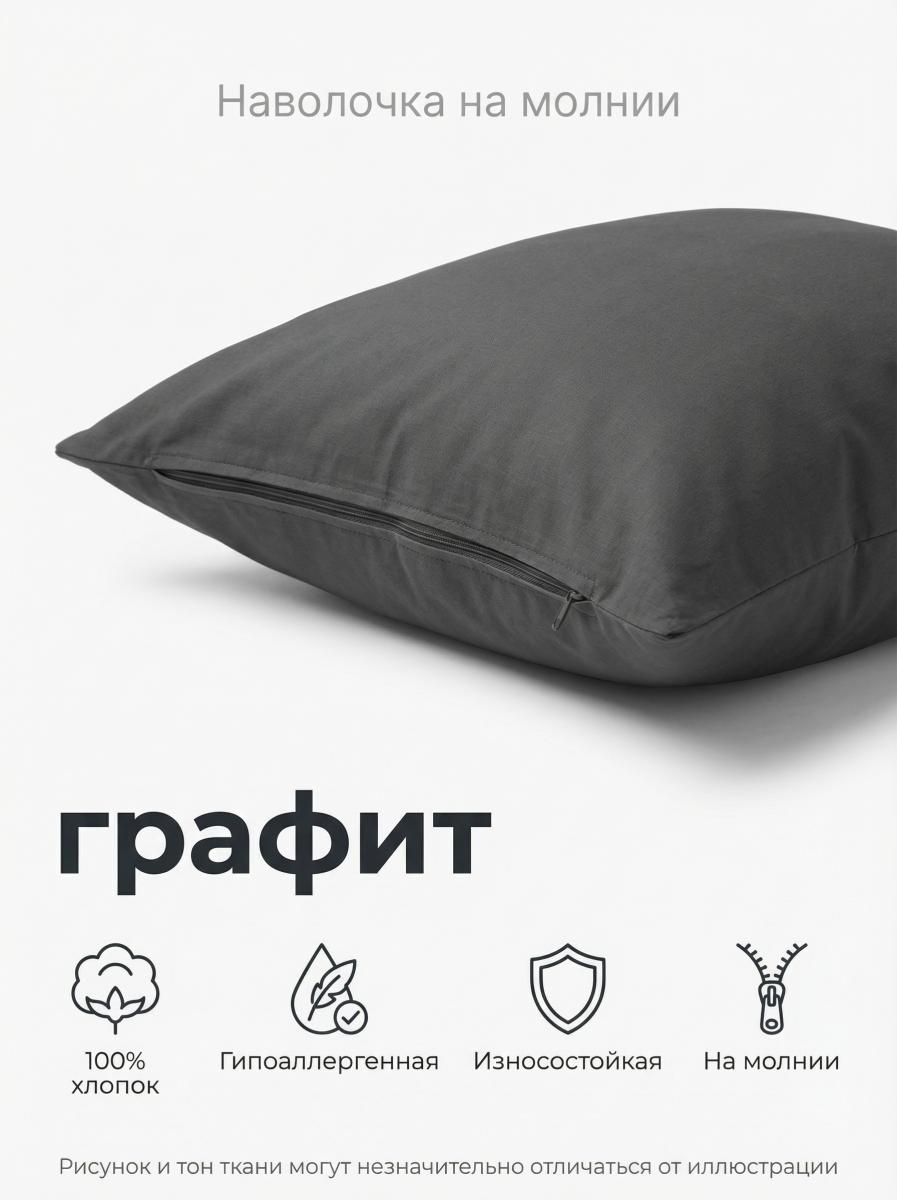 Наволочка на молнии поплин графит