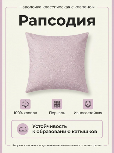Наволочка выполнена из поплина. Ткань из 100% натурального хлопкового волокна отличается гипоаллергенностью, гигиеничностью, износостойкостью. Она приятна к телу, отлично пропускает воздух, не электризуется. За поплиновым бельем очень легко ухаживать. Оно не теряет яркости и не деформируется при стирке с температурой до 40°С.