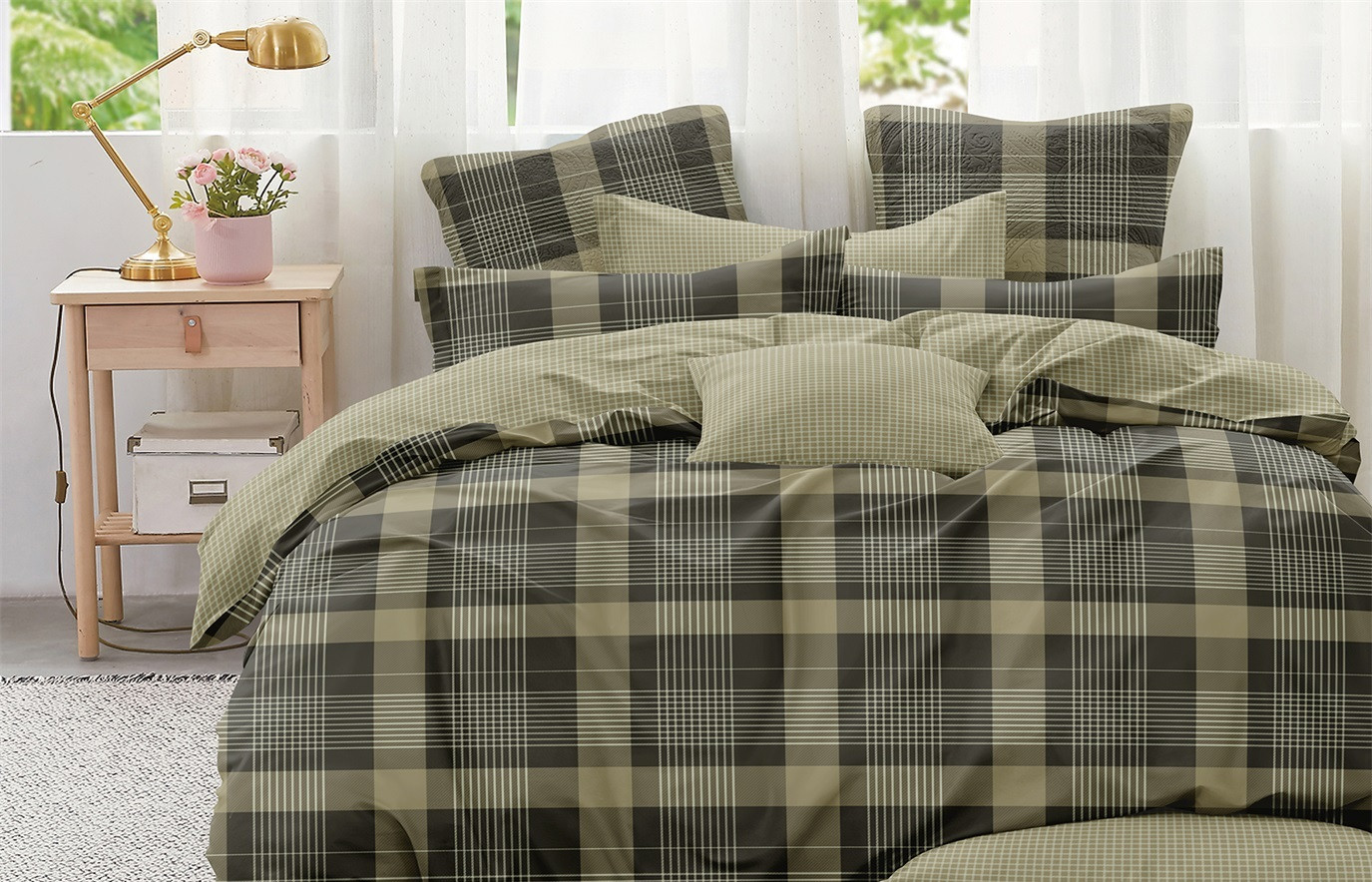Комплект выполнен "без оборок", наволочки с клапаном "без ушек". Пододеяльник с разрезом по нижнему краю Поплин плотностью 110-115 г/кв.м, 100% хлопок