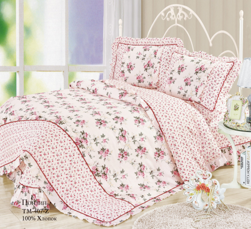 Комплект выполнен "без оборок", наволочки с клапаном "без ушек". Пододеяльник с разрезом по нижнему краю Поплин плотностью 110-115 г/кв.м, 100% хлопок