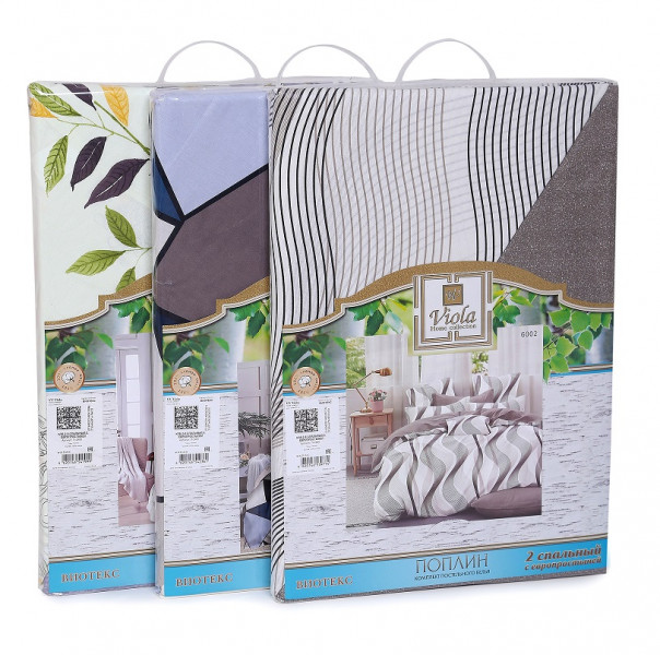 Комплект выполнен "без оборок", наволочки с клапаном "без ушек". Пододеяльник с разрезом по нижнему краю Поплин плотностью 110-115 г/кв.м, 100% хлопок