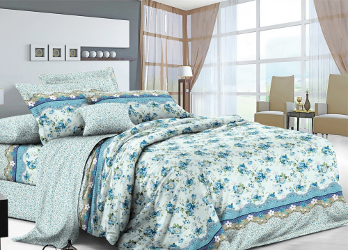 Комплект выполнен "без оборок", наволочки с клапаном "без ушек". Пододеяльник с разрезом по нижнему краю Поплин плотностью 110-115 г/кв.м, 100% хлопок