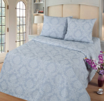 Комплект выполнен "без оборок", наволочки с клапаном "без ушек". Пододеяльник с разрезом по нижнему краю Поплин плотностью 110-115 г/кв.м, 100% хлопок