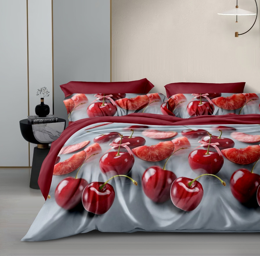 Поплин плотностью 110-115 г/кв.м, 100% хлопок Комплект выполнен "без оборок", наволочки с клапаном "без ушек". Пододеяльник с разрезом по нижнему краю