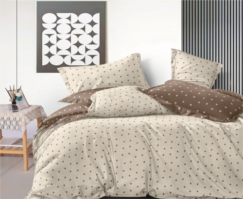 Поплин плотностью 110-115 г/кв.м, 100% хлопок Комплект выполнен "без оборок", наволочки с клапаном "без ушек". Пододеяльник с разрезом по нижнему краю
