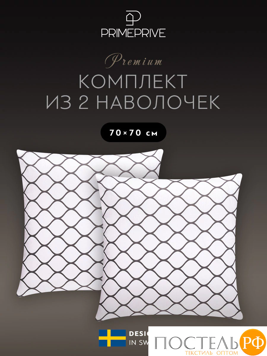 PRIME PRIVE ХАРДИ сер К-т Наволочек 70х70-2, 2 пр., хл./сатин