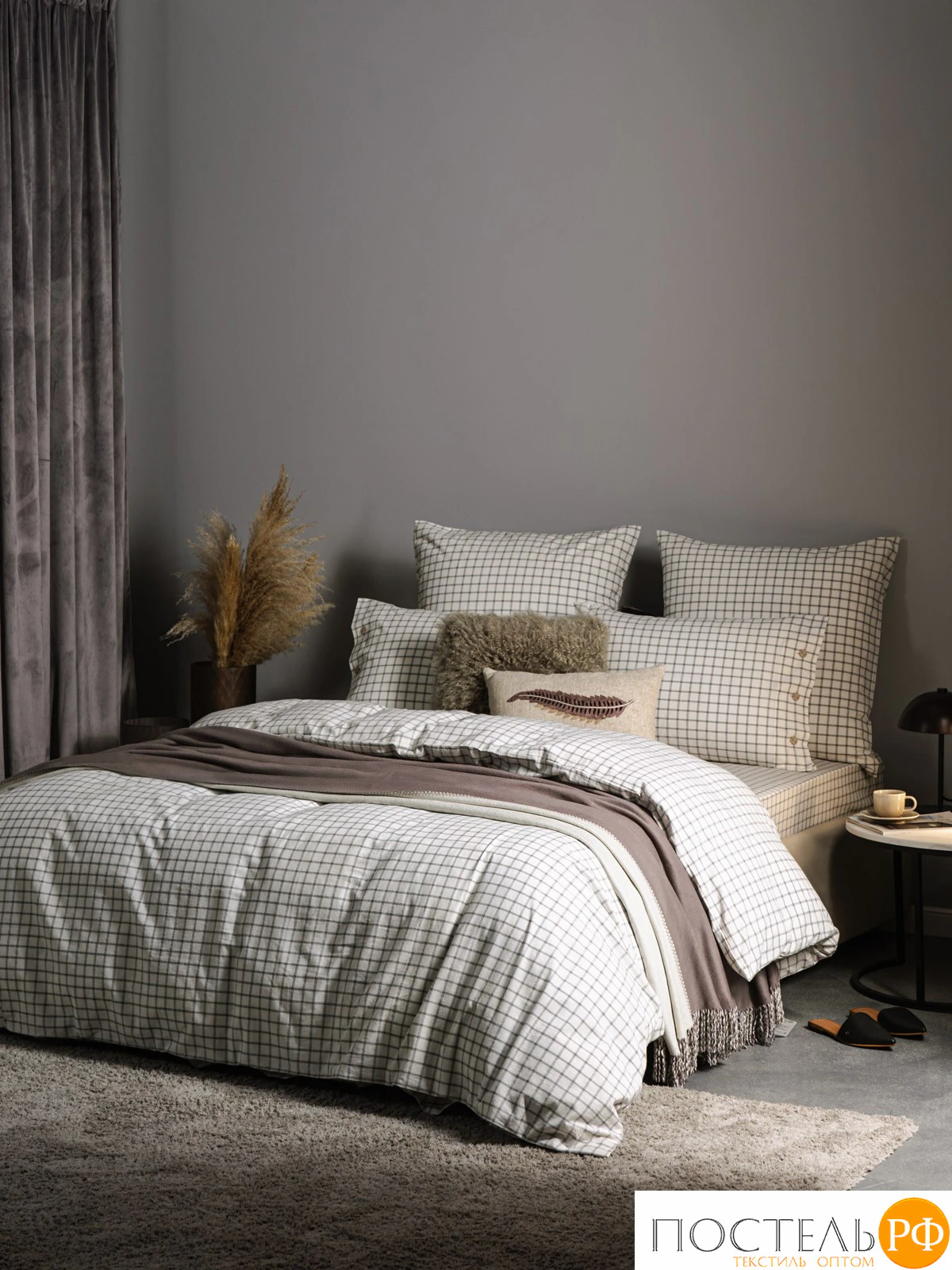 ст. цена5849,55руб.! PRIME PRIVE ВАЛЬБО бел/черн (клетка) КПБ 145х205-1/180х220-1/50х70-2, 4 пр., хл.