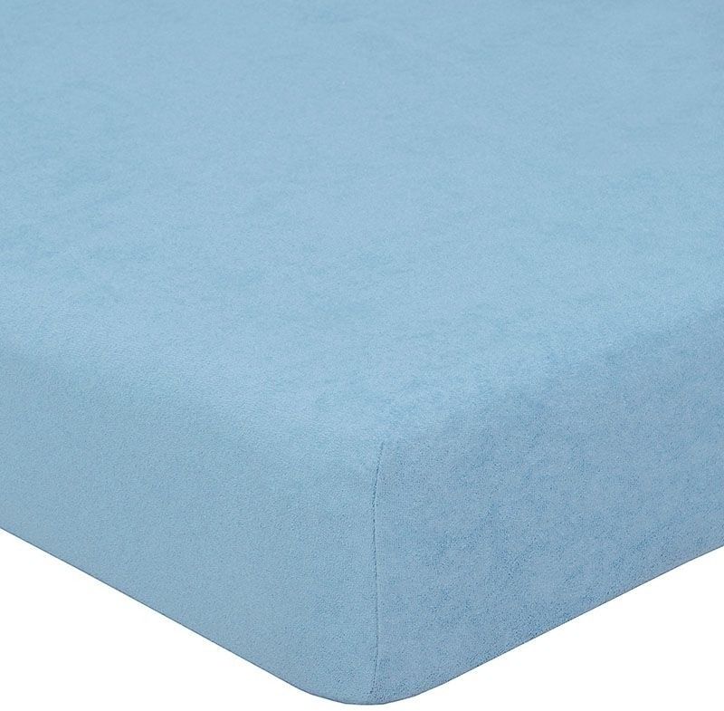 Материал ткани: махровое полотно; Состав: хлопок не менее 80%, п/э не более 20%; Плотность: 160 ± 5 г/м2; Высота борта: 20 см; Тип изделия: простыни на резинке; Производство: г. Иваново; Цвет: голубой; Размер: 120х200 см
