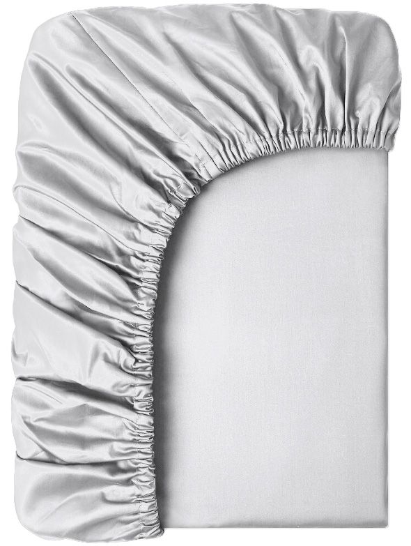 Материал ткани: сатин; Состав: 100% хлопок; Плотность: 120 ± 5 г/м2; Высота борта: 35 см; Тип изделия: простыни на резинке; Производство: г. Иваново; Цвет: серый; Размер: 160х200 см