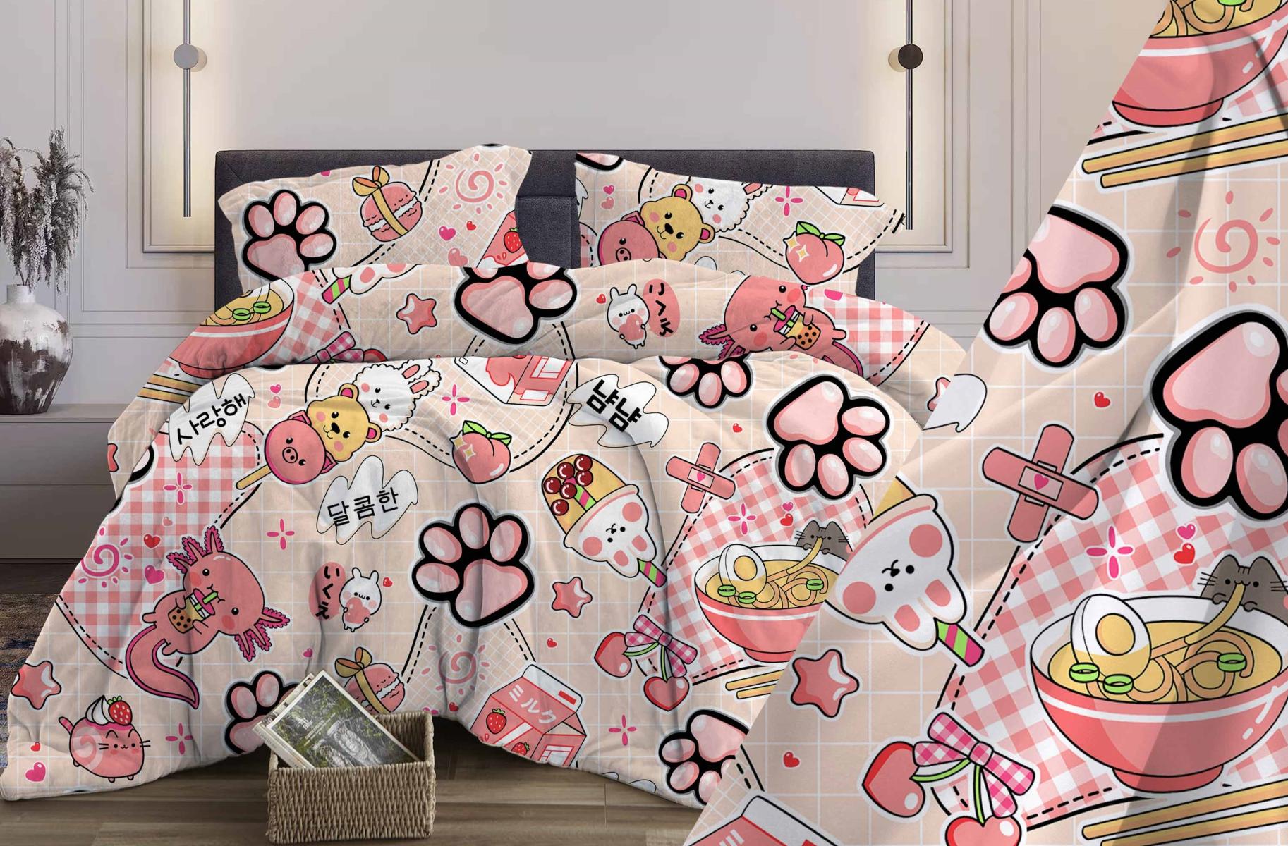 Постельное белье изготовлено из натуральной 100%-ой хлопковой ткани плотного плетения. Экологически чистый природный материал, способный сохранить яркость рисунка после множества стирок. Хорошо пропускает воздух, создавая комфортную атмосферу в вашей кровати.