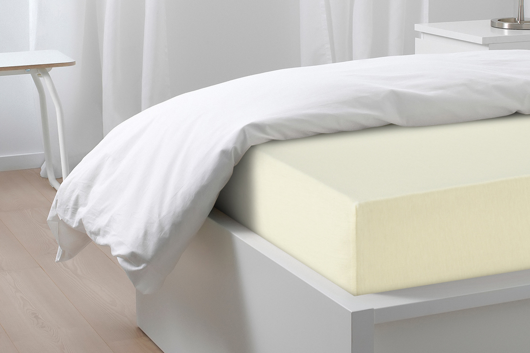 Простыня трикотажная 140*200*20 на резинке Экотекс 140*200*20, молочный 2 спальный Скидка Акция15